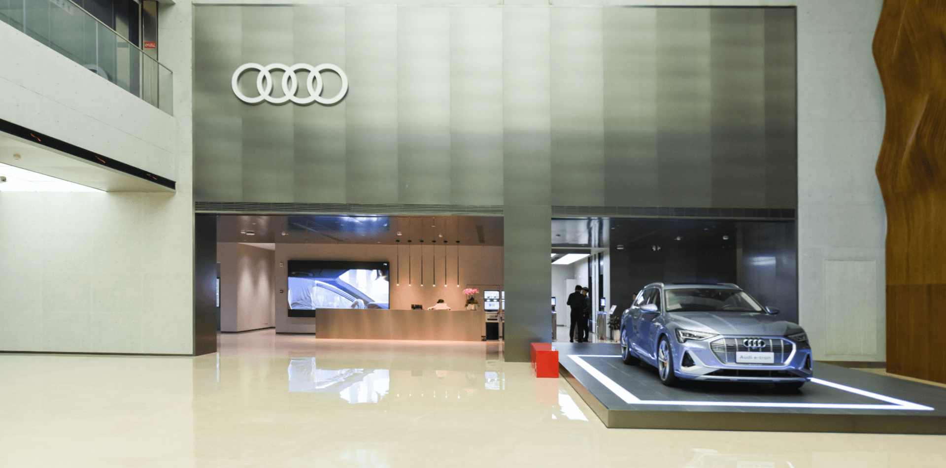项目获中国建筑工程装饰奖、杭州市优秀建筑装饰装修工程,集团从匠心匠造到品质交付,以绿城式精美、精工、精准的“三精”标准推动项目建设,为一汽奥迪开篇杭城故事。以“简”与“净”为整体风格进行打造,以实现空间更多形式的活动场景变化,体现奥迪文化独有的属性。项目运用大量颜色简洁的铝板、和纹钢板、亚克力、玻璃砖等饱含现代气息的材料铺设,以凸显材质新颖和环保的同时,传递宁静的氛围感,营造办公环境的简约沉稳,注重功能性的同时不失空间的精致感。不同的空间用不同的材质进行组合,推进了空间层次感。例如电梯厅空间采用和纹不锈钢板材质创造出精致;LOGO墙利落的线条与奥迪专属红色点睛,同时带有部分留白,也就有了言外之意、韵外之致;公共卫生间内岩板、木色暖调蹲位隔断,成品白色台下洗手池,更具人文关怀……在项目卫生间墙、电梯厅地面岩板黏贴施工上,项目团队践行“精准、精良、精细”的精工标准,大到材质选择,小到施工细节,让绿城式品质匠心落地。