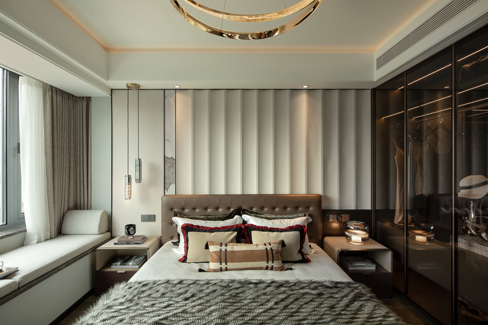 杭州宸樾山澜里位于临平山南。这里既是城市的繁华源点所在,亦是千年人文精粹之地。设计团队以地域文脉与城市肌理为设计起点,综合江南人文色彩与现代主义,通过打磨空间的色调、材料与细节,为生活带来源源不断的惊喜与深刻的美感。以“自然、柔和”为灵感,素雅的黑白铺满洽谈区,家具精选奢华面料与顶级皮革与潘多拉岩板的纹理、光泽质感巧妙融合,层次错落有致。设计师利用温润的曲线包裹场域,光滑的金属表面与内敛的木墙,为空间赋予了丰富的肌理质感,整体气质简约却不单一乏味。柔和的线条与细腻的材质融合在一起,呈现出似静似动的美感,整体造型注重流动感的表达,犹如水墨画般的韵律在空间中缓缓展开。卧室空间以轻奢品味为主导,色调柔和细腻,营造出静谧舒适的氛围。架空层犹如一条绿色的呼吸带,将自然与建筑有机融合。