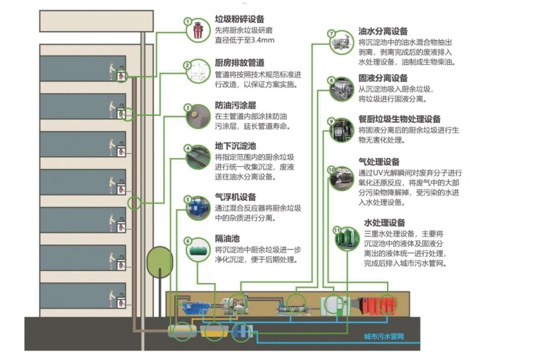 餐厨垃圾管道收集处理一体化设备通过管道收集和餐厨垃圾资源化处理技术,解决餐厨垃圾源头收集处理的难题。